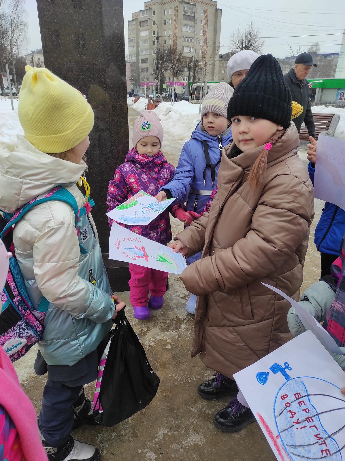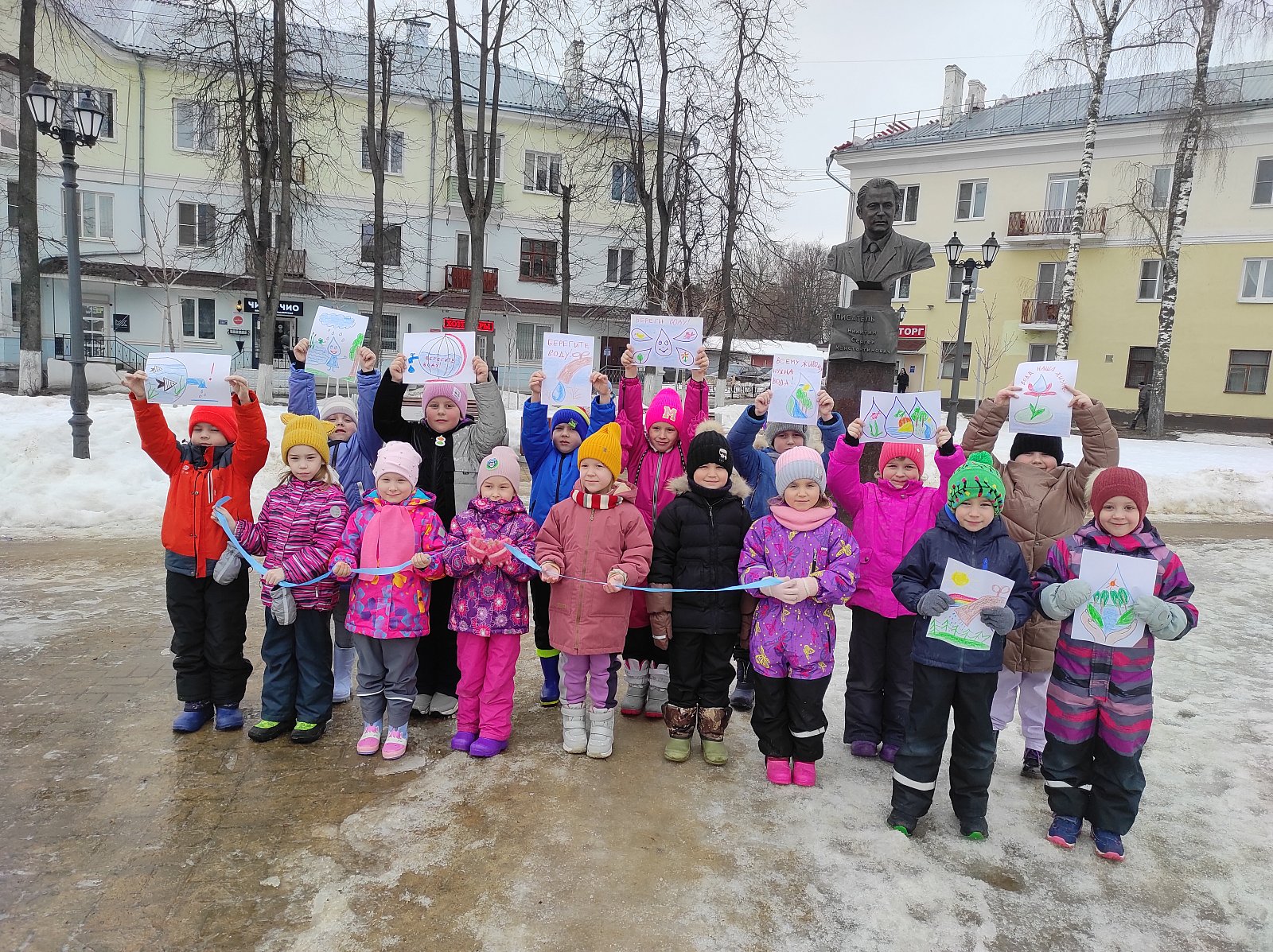 В акции приняли участие воспитанники 4 – 7 лет. Дети вместе с педагогами вышли в сквер имени С. Никитина с символичными голубыми ленточками, голубыми шарами-«капельками» и рисунками-листовками с информацией о важности бережного отношения к водным ресурсам и раздали их проходящим детям и взрослым.
